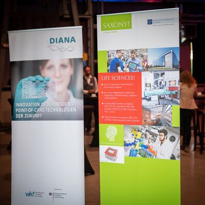 Die gestrige Veranstaltung moderiert durch Elisabeth Wenzel, Nina Oswald und Udo Eckert, unterstützt durch VEMASinnovativ, sowie die Wirtschaftsförderung Sachsen hat mit unterschiedlichen Programmpunkten wie Impulsvorträgen, Workshops, Pitches, Themeninseln und einer Podiumsdiskussion die breitgefächerten Anwendungsbereiche für POCT vorgestellt, zukünftige Bedarfe diskutiert und neue Ansätze für innovative Diagnostik abgeleitet. Dabei sind ganz im Sinn der Verknüpfung von Diagnostik mit der Produktionstechnik einige wichtige Vertreter der POCT-Endanwender, wie DRK-Blutspendedienst Nord-Ost, Robert Koch Institut, AWO Lausitz und Vertreter der Allgemeinmedizin mit InfectoGnostics Research Campus Jena sowie POCT Best Practice Beispiele wie Selfdiagnostics Deutschland GmbH mit Marko Lehes und anvajo mit Dr. Felix Lambrecht an den produktionstechnischen Standort von WIR! sind DIANA gekommen.