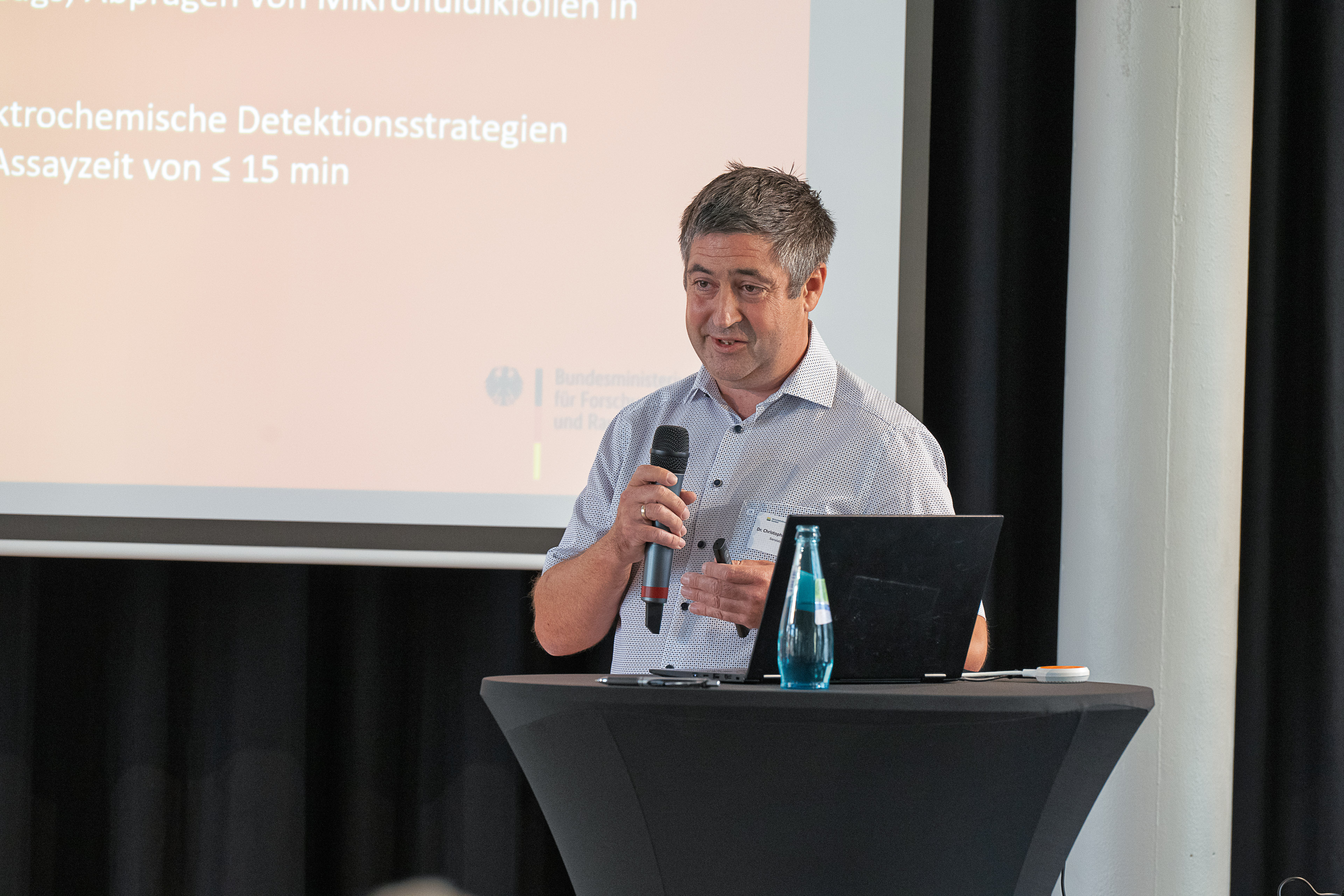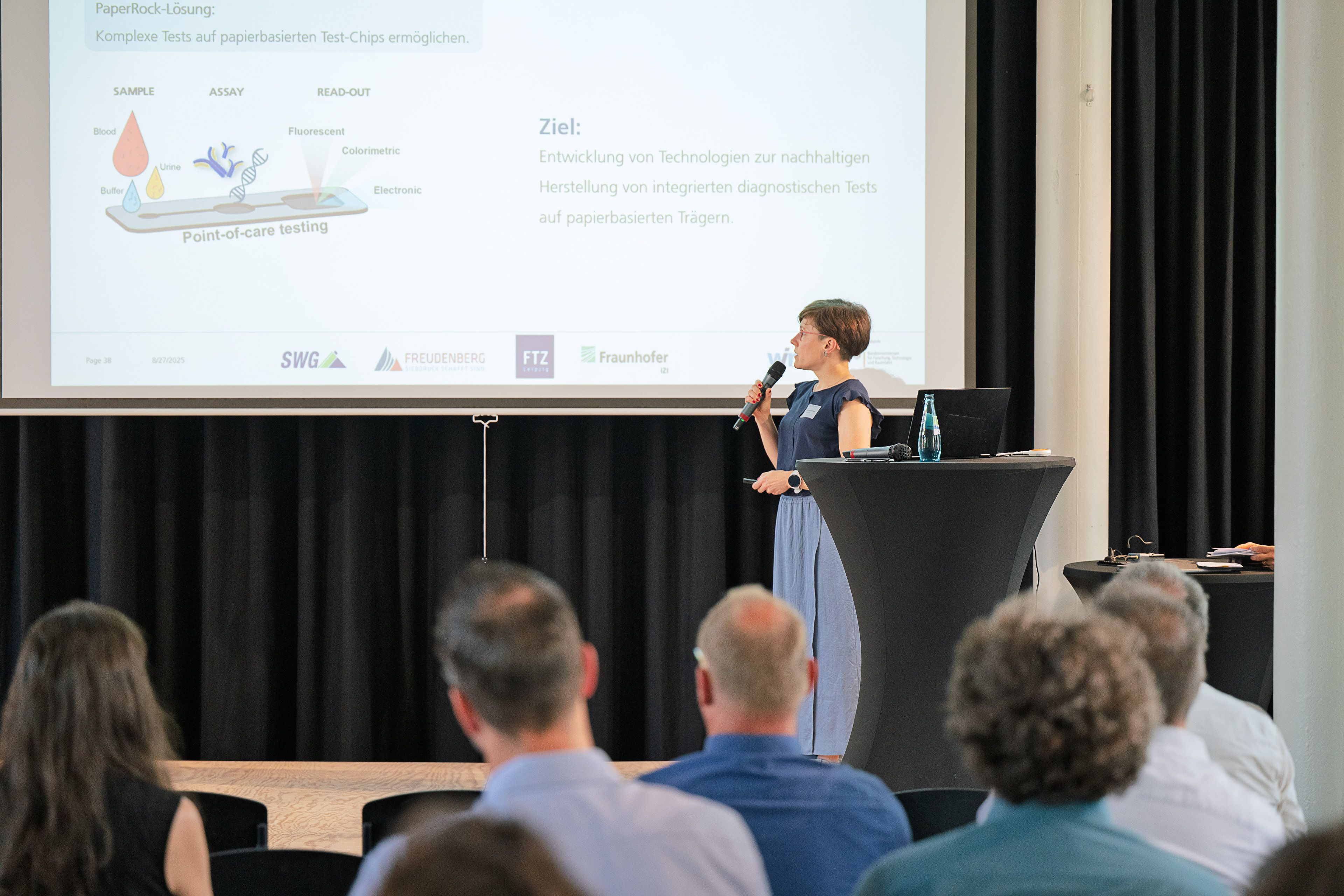 Am 27. August 2025 fand das 4. DIANA-Forum unter dem Titel „Einsatzbereit in Sekunden POCT als Schlüsseltechnologie unter Extrembedingungen“ in der beeindruckenden Eventlocation „Die Fabrik“ in Chemnitz statt. Im Fokus standen praxisnahe Einsatzszenarien von Point-of-Care-Technologien – vom Leistungssport über Rettungseinsätze und Notfallmedizin bis hin zur Nutztierdiagnostik. Das Forum brachte Expert:innen aus Medizin, Sportwissenschaft, Landwirtschaft, Technik, Forschung und Wirtschaft zusammen und spannte damit einen interdisziplinären Bogen, der die Stärke des DIANA-Bündnisses deutlich zeigte: Diagnostik dorthin zu bringen, wo sie gebraucht wird – schnell, zuverlässig und unter realen Einsatzbedingungen. In Impulsvorträgen und einer Podiumsdiskussion diskutierten u. a. Christopher Pöhlmann (EKF Diagnostics), Robert Zickert (Chemnitzer FC), André Pollmächer (ehem. Hochleistungssportler Leichtathletik), Enrico Sieber, Prof. Dr. Andreas Fichtner (Zeisigwaldkliniken Bethanien) und Stephan Nüsser (SNDC GmbH) über aktuelle Anforderungen und Innovationspotenziale. Dabei wurde sichtbar, wie vielfältig POCT-Anwendungen heute schon sind – von Wearables und Schnelltests bis zu textilintegrierten Sensoren. Zuvor stellten aber mehrere DIANA-Projektteams ihre Entwicklungen in einer Begleitausstellung vor und zeigten eindrucksvoll, wie nah die laufenden Projekte bereits an realen Anwendungsszenarien ausgerichtet sind. Das Forum markierte gleichzeitig die Halbzeit der aktuellen Förderphase. In einer Zwischenbilanz wurden Fortschritte, Bedarfe und neue Transferperspektiven zur weiteren Stärkung der regionalen Innovationskraft diskutiert.