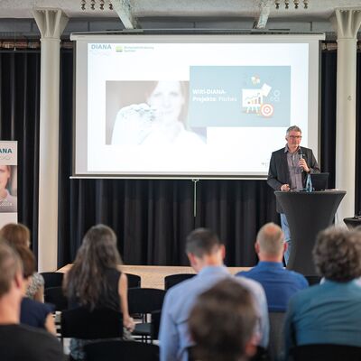 Am 27. August 2025 fand das 4. DIANA-Forum unter dem Titel „Einsatzbereit in Sekunden POCT als Schlüsseltechnologie unter Extrembedingungen“ in der beeindruckenden Eventlocation „Die Fabrik“ in Chemnitz statt. Im Fokus standen praxisnahe Einsatzszenarien von Point-of-Care-Technologien – vom Leistungssport über Rettungseinsätze und Notfallmedizin bis hin zur Nutztierdiagnostik. Das Forum brachte Expert:innen aus Medizin, Sportwissenschaft, Landwirtschaft, Technik, Forschung und Wirtschaft zusammen und spannte damit einen interdisziplinären Bogen, der die Stärke des DIANA-Bündnisses deutlich zeigte: Diagnostik dorthin zu bringen, wo sie gebraucht wird – schnell, zuverlässig und unter realen Einsatzbedingungen. In Impulsvorträgen und einer Podiumsdiskussion diskutierten u. a. Christopher Pöhlmann (EKF Diagnostics), Robert Zickert (Chemnitzer FC), André Pollmächer (ehem. Hochleistungssportler Leichtathletik), Enrico Sieber, Prof. Dr. Andreas Fichtner (Zeisigwaldkliniken Bethanien) und Stephan Nüsser (SNDC GmbH) über aktuelle Anforderungen und Innovationspotenziale. Dabei wurde sichtbar, wie vielfältig POCT-Anwendungen heute schon sind – von Wearables und Schnelltests bis zu textilintegrierten Sensoren. Zuvor stellten aber mehrere DIANA-Projektteams ihre Entwicklungen in einer Begleitausstellung vor und zeigten eindrucksvoll, wie nah die laufenden Projekte bereits an realen Anwendungsszenarien ausgerichtet sind. Das Forum markierte gleichzeitig die Halbzeit der aktuellen Förderphase. In einer Zwischenbilanz wurden Fortschritte, Bedarfe und neue Transferperspektiven zur weiteren Stärkung der regionalen Innovationskraft diskutiert.