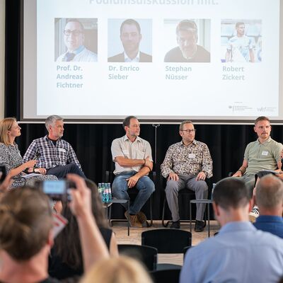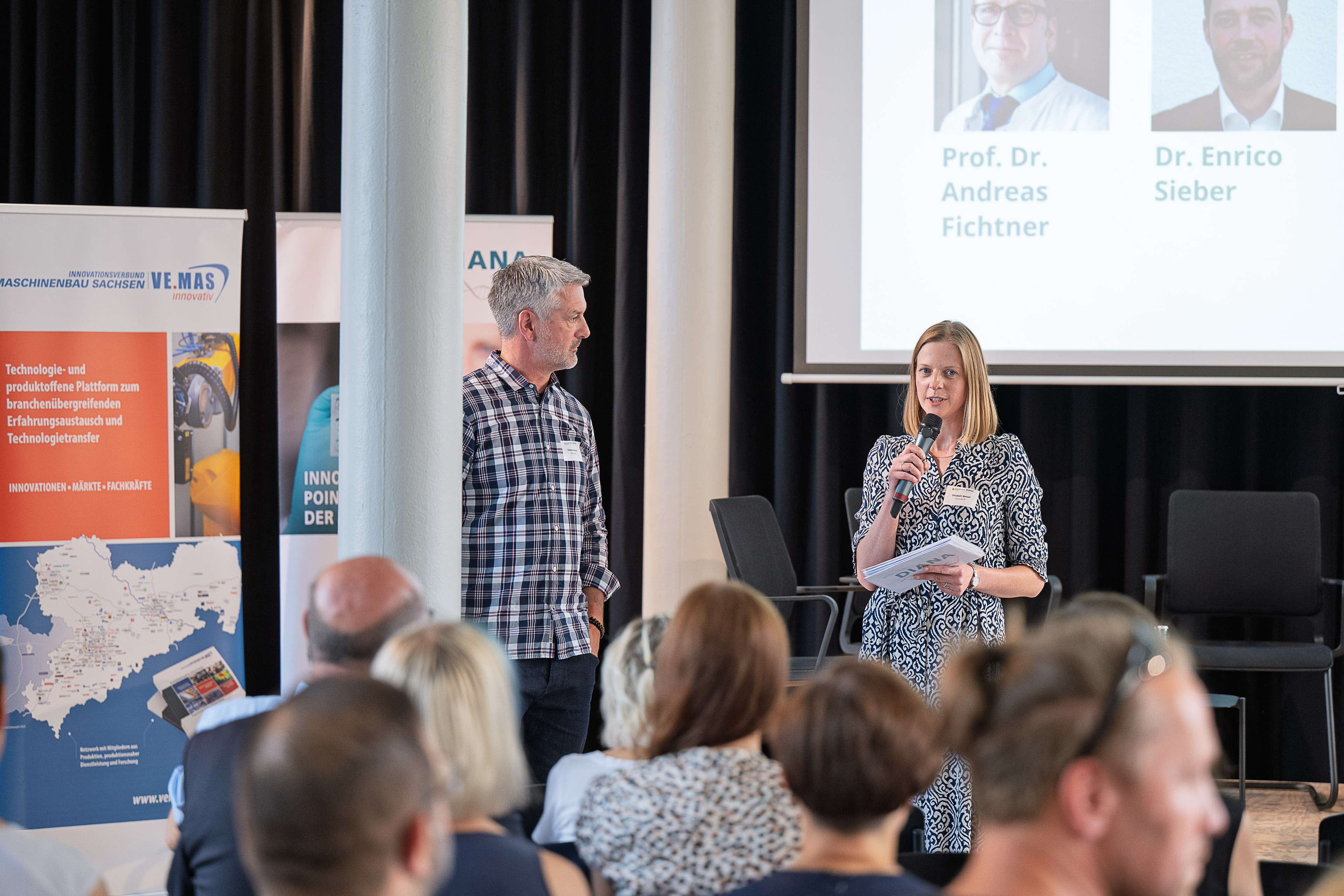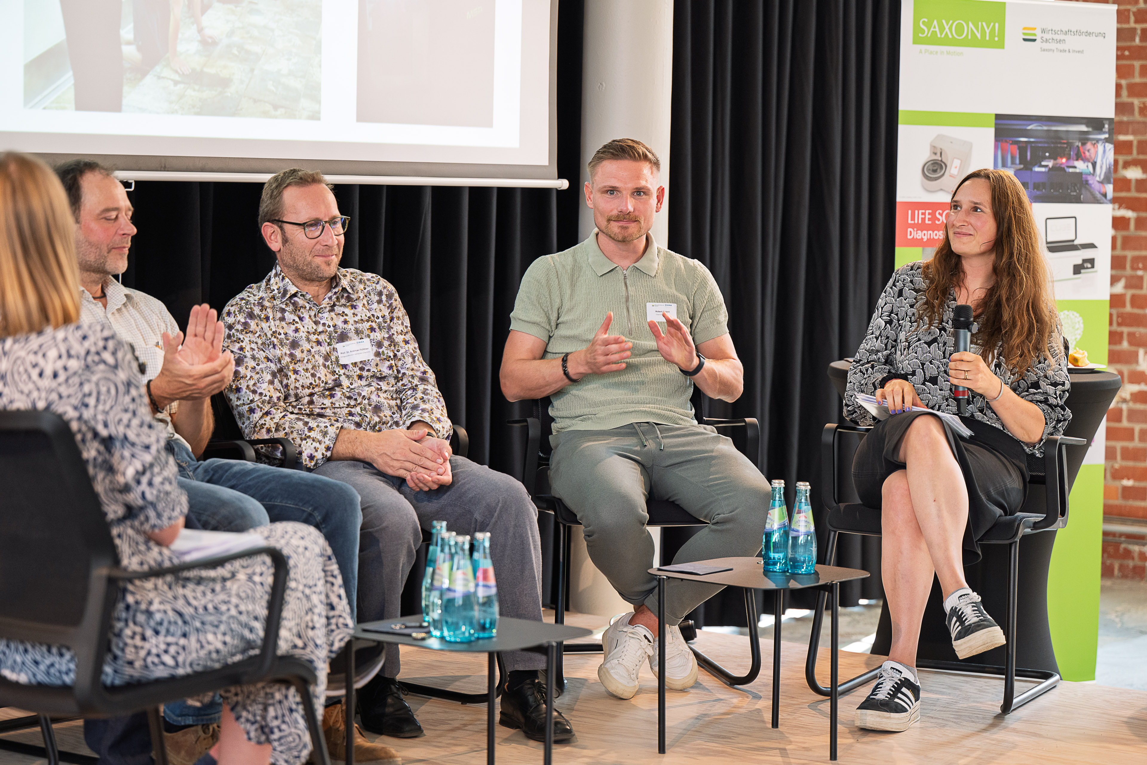 Am 27. August 2025 fand das 4. DIANA-Forum unter dem Titel „Einsatzbereit in Sekunden POCT als Schlüsseltechnologie unter Extrembedingungen“ in der beeindruckenden Eventlocation „Die Fabrik“ in Chemnitz statt. Im Fokus standen praxisnahe Einsatzszenarien von Point-of-Care-Technologien – vom Leistungssport über Rettungseinsätze und Notfallmedizin bis hin zur Nutztierdiagnostik. Das Forum brachte Expert:innen aus Medizin, Sportwissenschaft, Landwirtschaft, Technik, Forschung und Wirtschaft zusammen und spannte damit einen interdisziplinären Bogen, der die Stärke des DIANA-Bündnisses deutlich zeigte: Diagnostik dorthin zu bringen, wo sie gebraucht wird – schnell, zuverlässig und unter realen Einsatzbedingungen. In Impulsvorträgen und einer Podiumsdiskussion diskutierten u. a. Christopher Pöhlmann (EKF Diagnostics), Robert Zickert (Chemnitzer FC), André Pollmächer (ehem. Hochleistungssportler Leichtathletik), Enrico Sieber, Prof. Dr. Andreas Fichtner (Zeisigwaldkliniken Bethanien) und Stephan Nüsser (SNDC GmbH) über aktuelle Anforderungen und Innovationspotenziale. Dabei wurde sichtbar, wie vielfältig POCT-Anwendungen heute schon sind – von Wearables und Schnelltests bis zu textilintegrierten Sensoren. Zuvor stellten aber mehrere DIANA-Projektteams ihre Entwicklungen in einer Begleitausstellung vor und zeigten eindrucksvoll, wie nah die laufenden Projekte bereits an realen Anwendungsszenarien ausgerichtet sind. Das Forum markierte gleichzeitig die Halbzeit der aktuellen Förderphase. In einer Zwischenbilanz wurden Fortschritte, Bedarfe und neue Transferperspektiven zur weiteren Stärkung der regionalen Innovationskraft diskutiert.